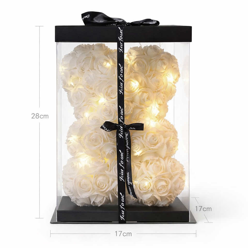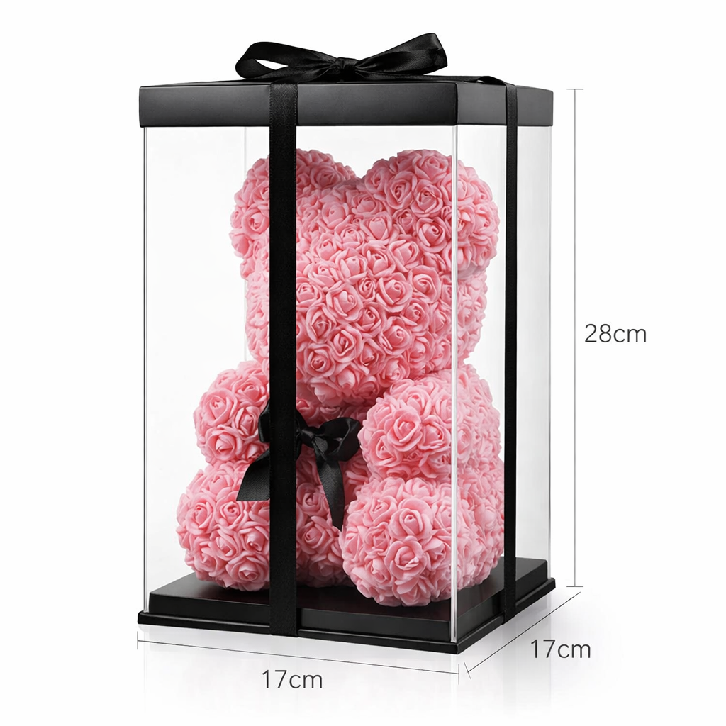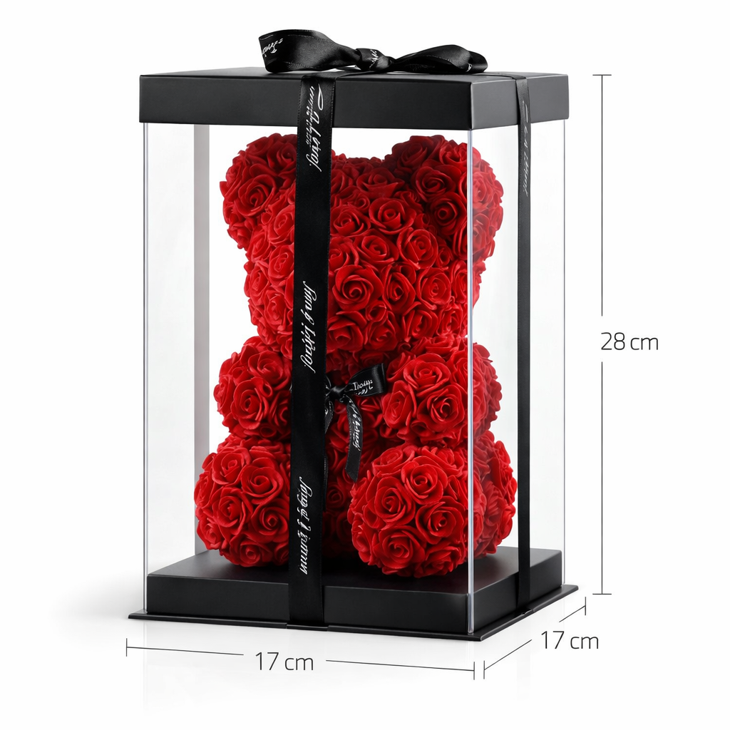 Un símbolo elegante de amor, detalle y romanticismo. Este osito de rosas ha sido creado para capturar emociones en una forma duradera y sofisticada. La suavidad visual de las rosas junto a la delicada corona lo convierten en un regalo verdaderamente especial.